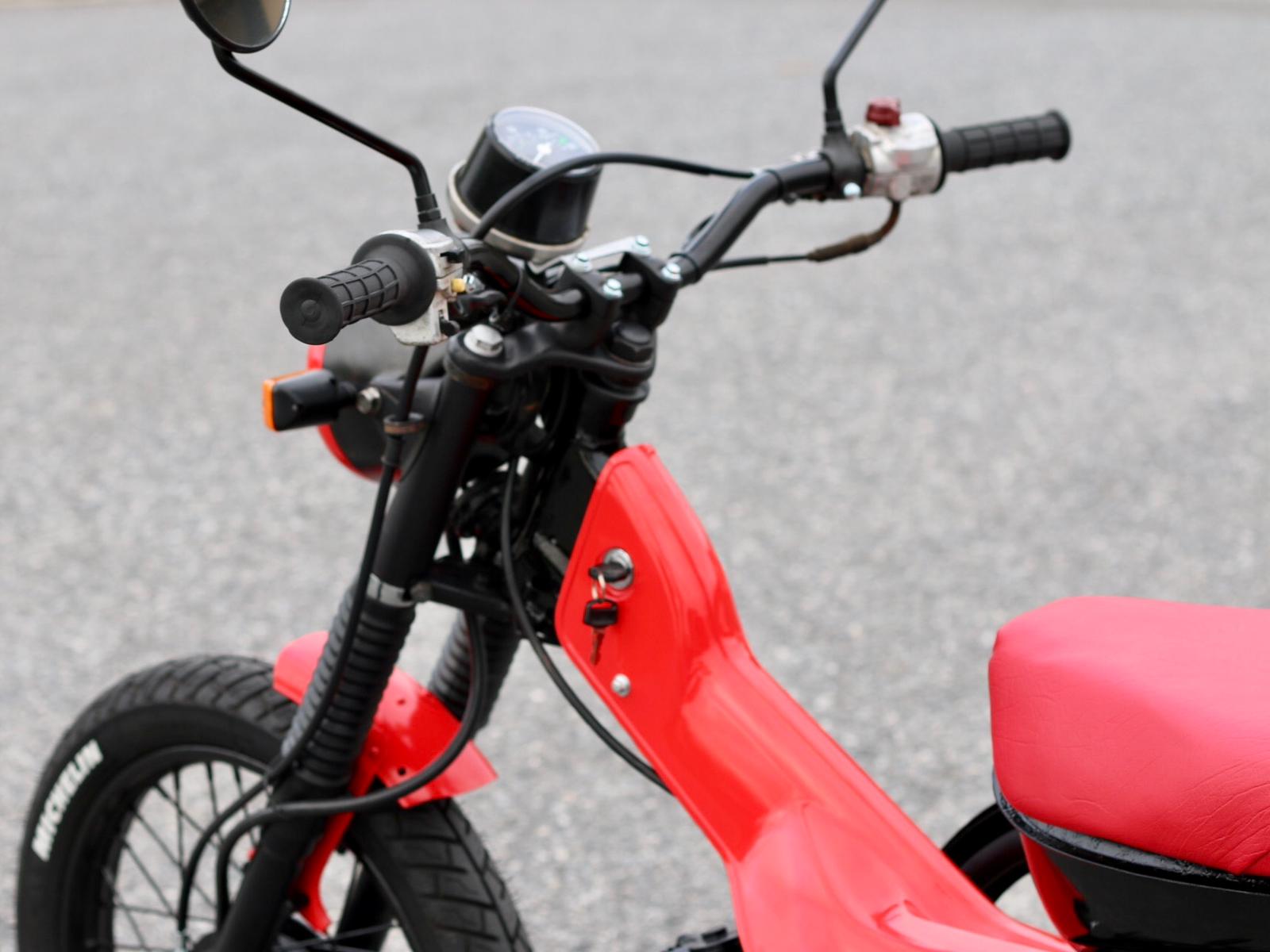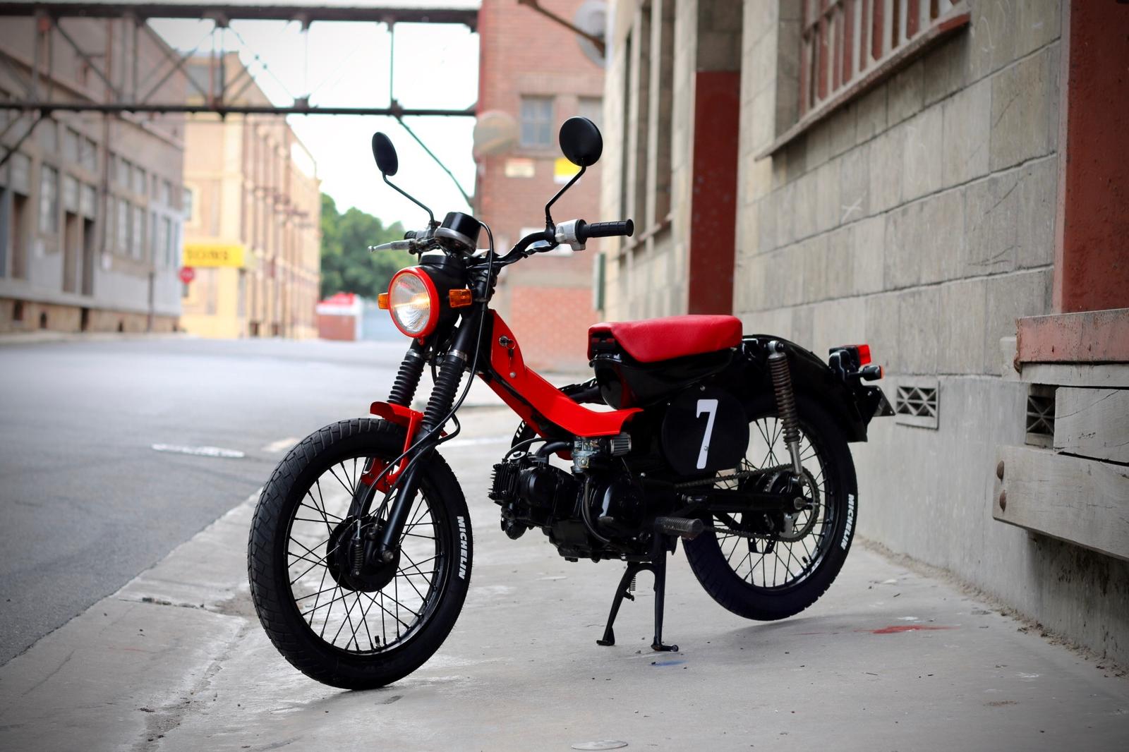 To complete the build, I fitted a range of our CT110 parts, including fork boots, seals, front and rear drum shoes, foot peg rubbers, key switch, brake lever, gear lever, chain and sprockets, grips, and mirrors. The end result is was a cool low cost CT110 bike to zip about the streets on.